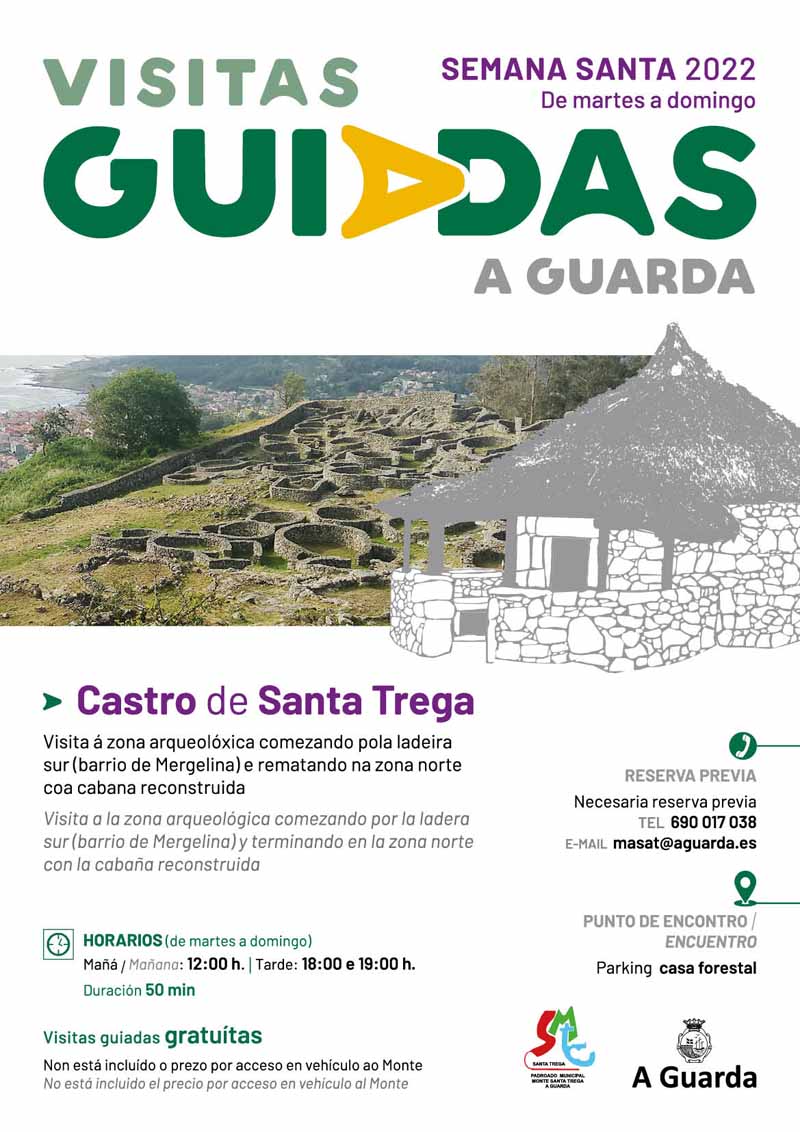 Esta Semana Santa se reanudan las habituales visitas guiadas al Castro de Santa Trega, y se han incrementado los días ofertados debido a las consultas recibidas. Así, desde el martes 12 hasta el domingo 17 de abril podrás conocer en detalle el yacimiento castreño más destacado de Galicia en tres turnos cada día: 12:00 / 18:00 y 19:00 horas. Las visitas guiadas son gratuitas pero requieren inscripción previa en el tel. 690017038 o en masat@aguarda.es. El punto de partida es la explanada de la Casa del Bosque, la casa de piedra que se encuentra tras atravesar la zona excavada del castro.