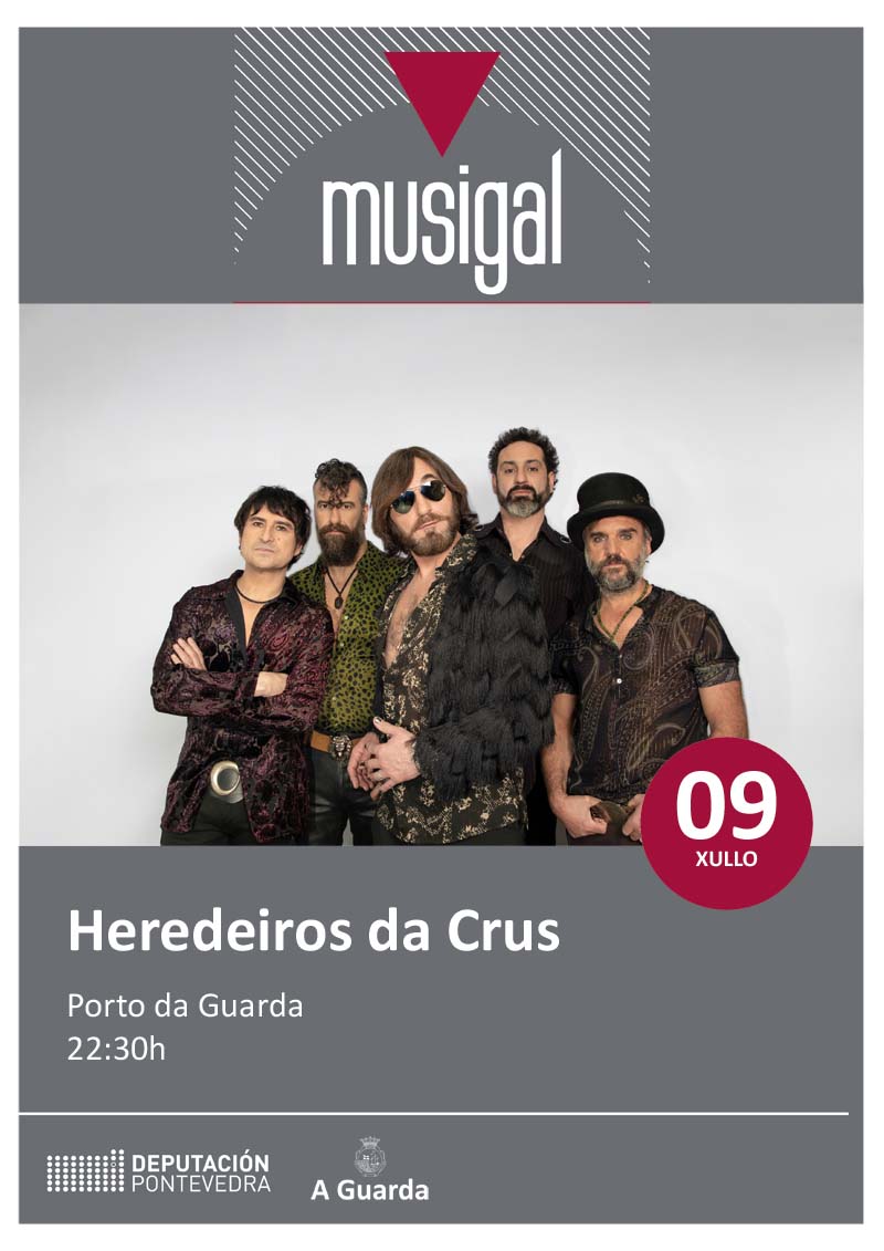 El Ayuntamiento de A Guarda se suma al circuito de música en directo Musigal de la Diputación Provincial de Pontevedra con una de las citas musicales más esperadas este verano en la localidad, el directo de una de las bandas gallegas más reconocidas “Heredeiros da Crus”, que es presentado como el fenómeno musical del siglo en Galicia”. Tendrá lugar el sábado 9 de julio a las 22.30 horas en la explanada de Porto da Guarda.
