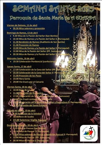 A Guarda iniciará oficialmente la celebración de la Semana Santa el viernes 22 de marzo, con la Procesión del “Viernes de Dolor”, a partir de las 21:00 horas desde la Iglesia Parroquial de Santa María.