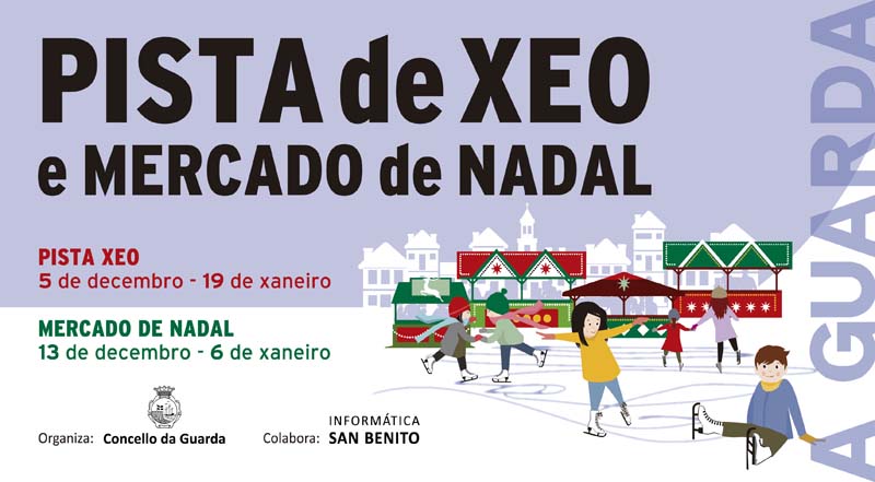 Contaremos ademais como no ano anterior cunha Pista de Xeo na Alameda da Guarda, e como novidade deste ano, un Mercado de Nadal na Praza de Avelino Vicente e acompañamento das carrozas de “La Fiesta Escénica” na Cabalgata de Reis cun percorrido dende a Alameda ata o concello ás 18:00 h.