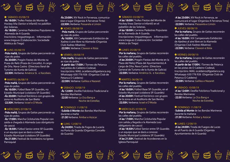 A Guarda acolle do 5 ao 12 de agosto as Festas do Monte 2019, unha semana chea de actividades culturais, deportivas e de ocio e tempo libre, Festas catalogadas de Interese Turístico de Galicia.