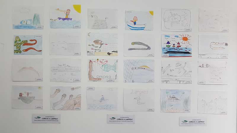 A continuación, el alumnado elaboró en las aula unos dibujos con la temática «Desembocadura do Miño e a lamprea», que se encuentran ya expuestos en la Plaza de Abastos hasta fin de mes.